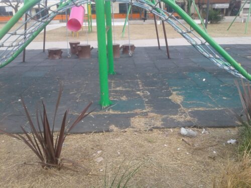 Debemos cuidar el lugar para recreación. La plaza es de todos; hay que mantenerla; de lo contrario, no va a servir de nada. Además, con el recorrido de los canes que pasean por aquí y andan buscando con qué alimentarse, es muy factible que las bolsas terminen desperdigadas, aumentando el nivel de mugre. Así no. Reflexionemos: ¡La plaza es de todos!