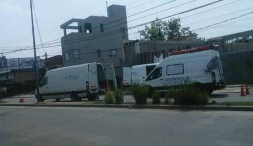 (CIB) La multinacional intenta otra vez reparar el servicio que provoca cortes reiterados en el límite con Villa España detrás de la terminal del 98. Por eso está cortada la Avenida Mitre entre 24 y 26 con dos camionetas de la empresa más dos camiones como se aprecia en las imágenes.