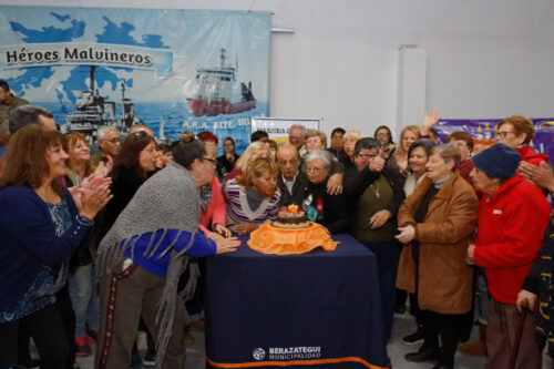 Socios de los Centros de Jubilados 18 de Marzo; Abril, del barrio Santa Carmen; Sol Naciente; Esperanza; Barrio Primavera; Abuelos Inquietos, de Buenaventura, y otros adultos mayores participaron de un nuevo cumpleaños comunitario en la Agrupación Excombatientes Héroes de Malvinas, de 121 e/ 24 y 25.
