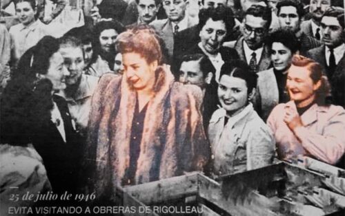 Para mí, recordar a Eva también es recordar a mi abuela. Durante mucho tiempo guardó una foto, de las que hay pocas, de una visita que Eva realizó a la emblemática fábrica de vidrio que se encuentra emplazada frente a la estación de trenes de Berazategui. Durante esa visita, Eva participó en una asamblea junto a las obreras de la fábrica, quienes le plantearon la necesidad de igualar las condiciones laborales con los hombres. Ellas, en sus sectores de trabajo, tenían pisos de tierra cuando ellos contaban con pisos de cemento y, además, ellas eran destajistas y ellos eran jornaleros.