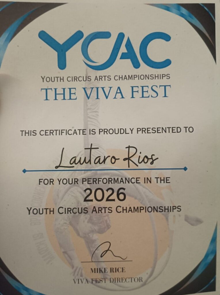 Lautaro Joel Ríos ganó el Youth Circus Arts Championships (YCAC) y participó en dos alucinantes funciones circenses junto a grandes artistas del rubro. En el Torneo Viva Fest, quedó segundo.