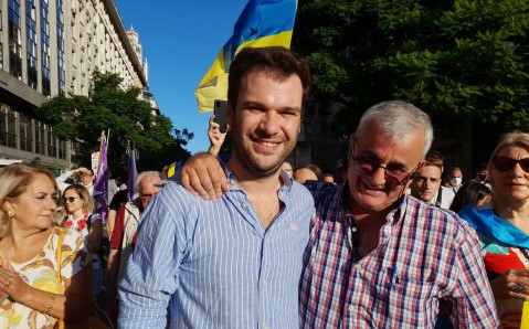 El ex concejal y consejero escolar (mc) Esteban Biondo junto a un grupo de amigos dieron el presente, por Berazategui, en la marcha de la representación Central Ucrania en la República Argentina (con unos 5000 asistentes), entre ellos también estuvieron representantes nacionales de Juntos.