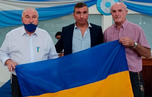 El primero de ellos fue el concejal Dante Morini, quien tuvo una reunió concreta con miembros de la colectividad ucraniana en Berazategui. El encuentro en el Deliberante lo mostró exhibiendo la bandera del país en conflicto.