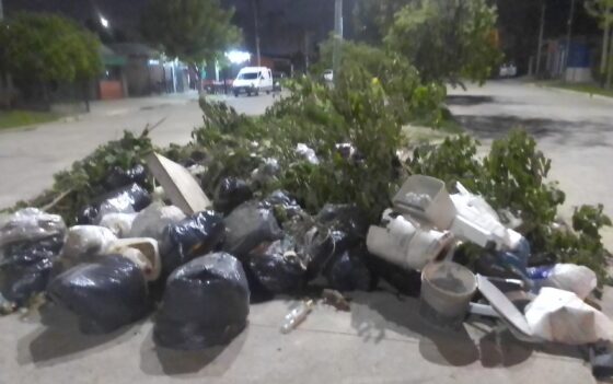 (CIB) La avenida 150 A que une villa España con Plátanos tiene su boulevar recargado de bolsas de basura y ramas amontonadas acumuladas durante un fin de semana: