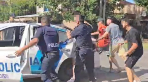 Cuando llegó el móvil policial, se encontraron con la familia y vecinos muy enojados; uno de los efectivos disparó con la escopeta al suelo. El agresor, quedó detenido en la Comisaría.