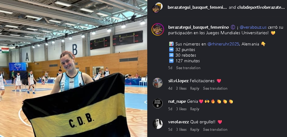 La basquetbolista Vera Usach Bouzigues fue convocada para el equipo que competirá en los Juegos Mundiales Universitarios FISU 2025, en Alemania.