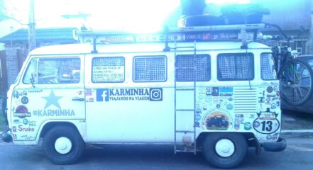 Karminha, una camioneta 1997 simple (como todas las kombis), que necesitaba muchos ajustes, la fuimos arreglando y montando nuestro proyecto inventando y copiando cosas de internet. Nuestro plazo era estar lista en diciembre de 2017, pero gracias a «Dios» conseguimos que quedara casi lista en mayo. En abril de 2017 resolvimos que íbamos a vivir en la camioneta y viajar por el mundo…