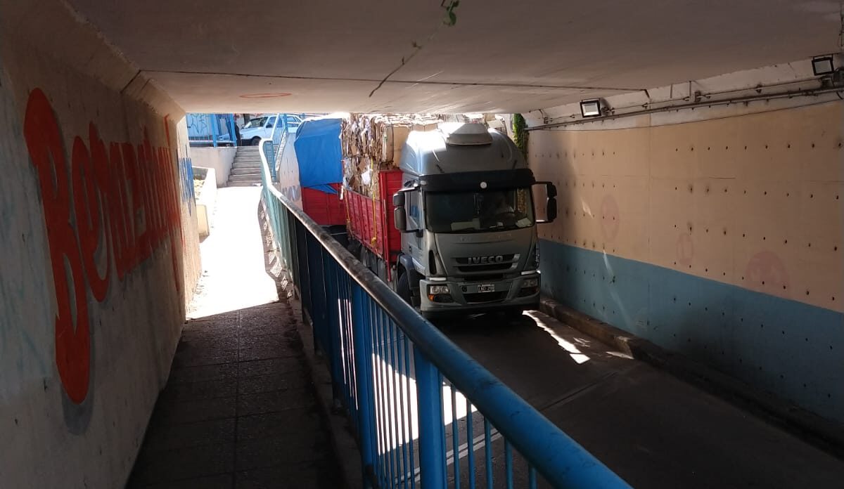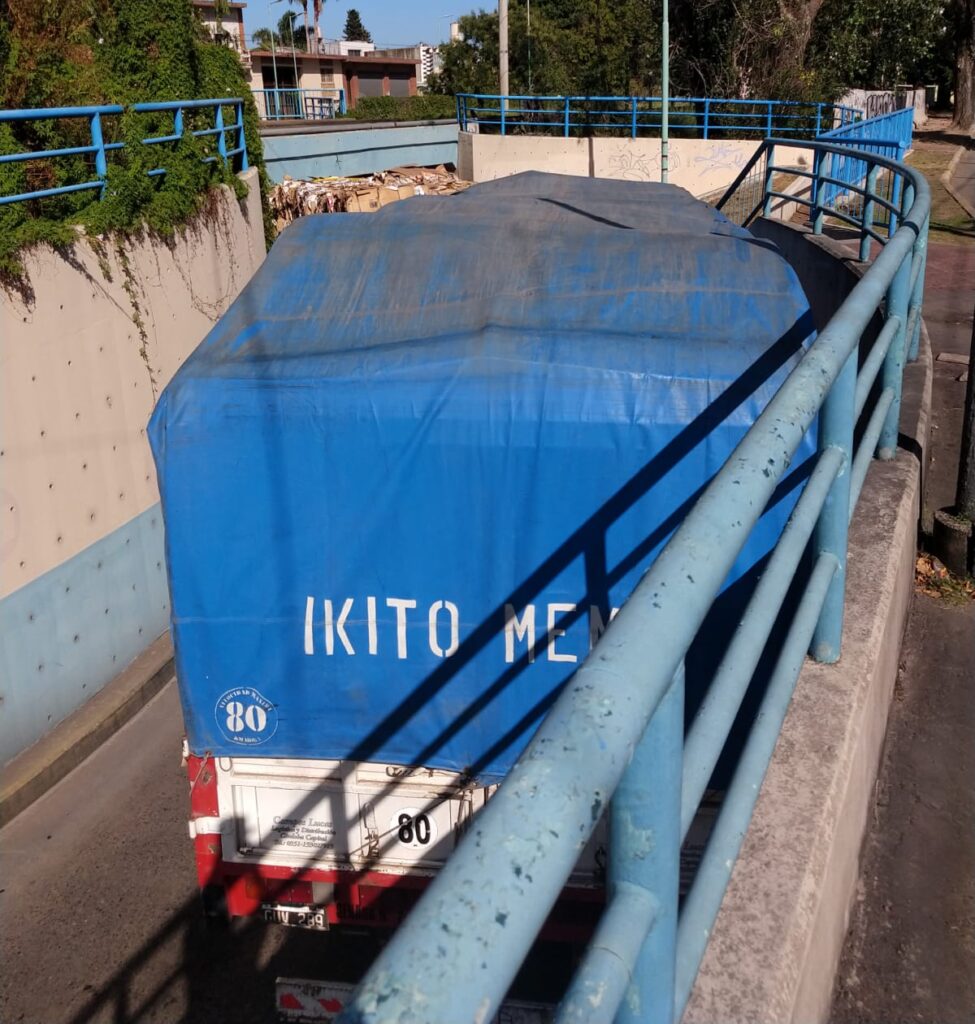 Pero qué hacía un camión con acoplado por esa zona ? Posiblemente el chofer desconocía ese bajo nivel pero la culpa es de los de tránsito que lo dejaron llegar hasta allí