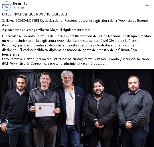 Bernal TV (facebook) con Gonzalo Pérez (basquet)