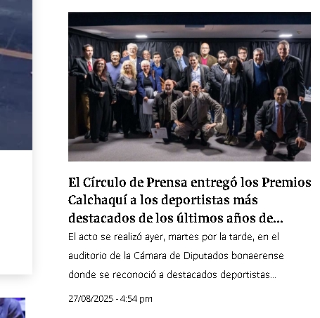 Los trabajadores de prensa en medios de Berazategui, Quilmes y F. Varela reconocieron a destacados deportistas locales de este cuarto de siglo. El Círculo de la Prensa Regional inauguró así los Premios Calchaquí para jóvenes amateurs, con una gala en el auditorio de la Cámara de Diputados de la Provincia.