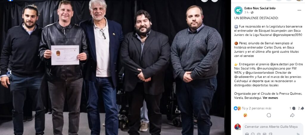 «Nosotros no inventamos nada más que el nombre del premio Calchaquí, por los originarios que dan nombre a la avenida que une los tres distritos. Los gestores de la idea de reconocer a los deportistas locales partió de los periodistas de La Palabra que cofundaron el Círculo de la Prensa, como Roberto Malco, Carlos ‘Tati’ Iglesias y Argentino Ríos entre otros. Vaya para ellos también nuestro recuerdo».