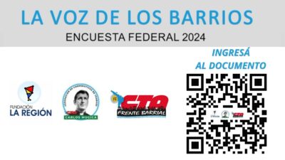 El trabajo, titulado como “La voz de los Barrios – Encuesta Federal”, fue pensado y diseñado con el objetivo de relevar información territorial que permita conocer en profundidad las condiciones de vida de la población en los tiempos que corren.
