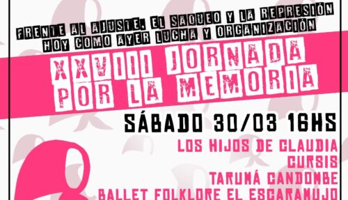 Convocan: ex detenides desaparecides, familiares de detenides desaparecides, Comisión por la Memoria, la Verdad y la Justicia de F. Varela, Frente de Organizaciones en Lucha (FOL), Centro Cultural Roque Dalton, Partido Obrero (PO), Partido de los Trabajadores Socialistas (PTS), MTR HISTÓRICO, Izquierda Socialista, Movimiento Socialista de los Trabajadores (MST), Red de Centros Comunitarios Monseñor Angelelli.