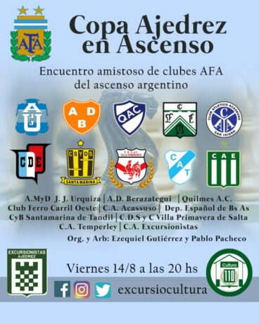 El equipo de ajedrez de la ADB representó este viernes 14 a Berazategui en la Copa Ajedrez en Ascenso, fue un encuentro amistoso de clubes AFA del ascenso argentino, se llevó a cabo por la plataforma Lichess de forma virtual por la imposibilidad de reunirse en forma presencial debido a la pandemia.
