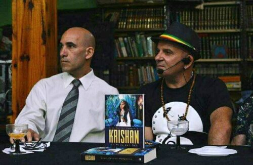 Juan Pomponio es de Ranelagh, donde ejerció la docencia y escribió varios de sus libros. Uno de los últimos había sido Krishan, presentado en la Asociación de Estudiantes Universitarios (ADEU) hacia marzo de 2017, cuando se tomó la foto junto al periodista de este CIB, Alberto Moya, quien ofició de presentador y lo definió como «la mejor pluma de ficción que ha dado la ciudad«.