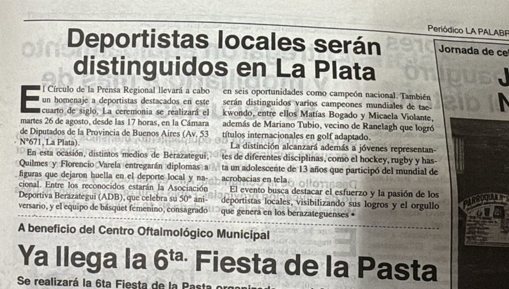 (CIB) El Círculo de la Prensa Regional homenajeará a deportistas destacados de este cuarto de siglo. Recupera así un ejercicio iniciado en los años ’90, cuando entregaron diplomas a varios jóvenes que luego fueron figuras descollantes, como Facundo Pierrot, campeón internacional de ajedrez, o el Tierno Moreyra, medallista olímpico en hockey.