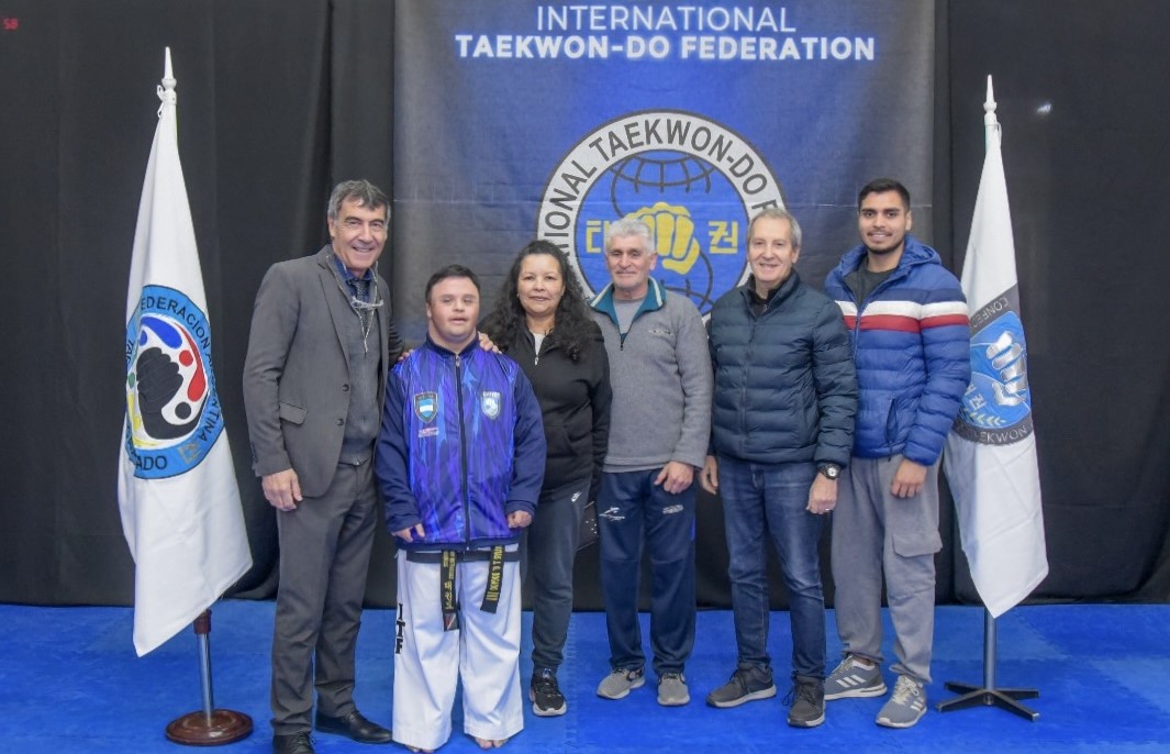 El vecino Matías Bogado (III Dan) junto a Iara Cedola (II Dan) y Facundo Ferrari Luengo (I Dan), en representación de la delegación argentina de la Federación Argentina de Taekwon-Do Adaptado, competirán en los IV Juegos Mundiales Barcelona 2025.