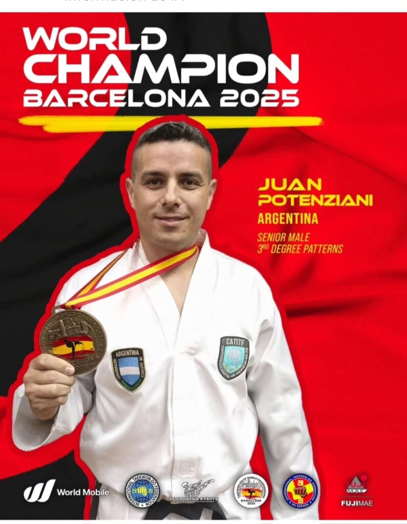 Un poco de historia de Matías Javier González Bogado, cinturón negro II Dan de Taekwondo ITF. Puso a la Argentina en el lugar más alto del podio en el 2° Mundial de Taekwondo Adaptado en Tecnópolis, 2018. Allí obtuvo una medalla dorada en Forma, y una medalla de bronce en Habilidades Mixtas. Luego, participó en Holanda-2022 y, ahora, de Barcelona, trajo tres medallas.