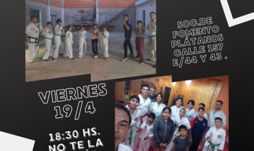 (CIB) La Asociación de Taekwon-do ITF sede Plátanos brindará otra clase general este viernes 19 en la sede de la sociedad de fomento Plátanos.
